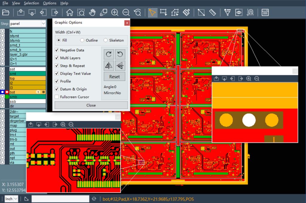 OpenCAM是由無錫東領(lǐng)智能科技股份有限公司開發(fā)的一款輕量級(jí)PCB CAM圖形查看器。基于C++開發(fā),具有超高的圖形顯示效率,完全支持ODB++8.1格式。